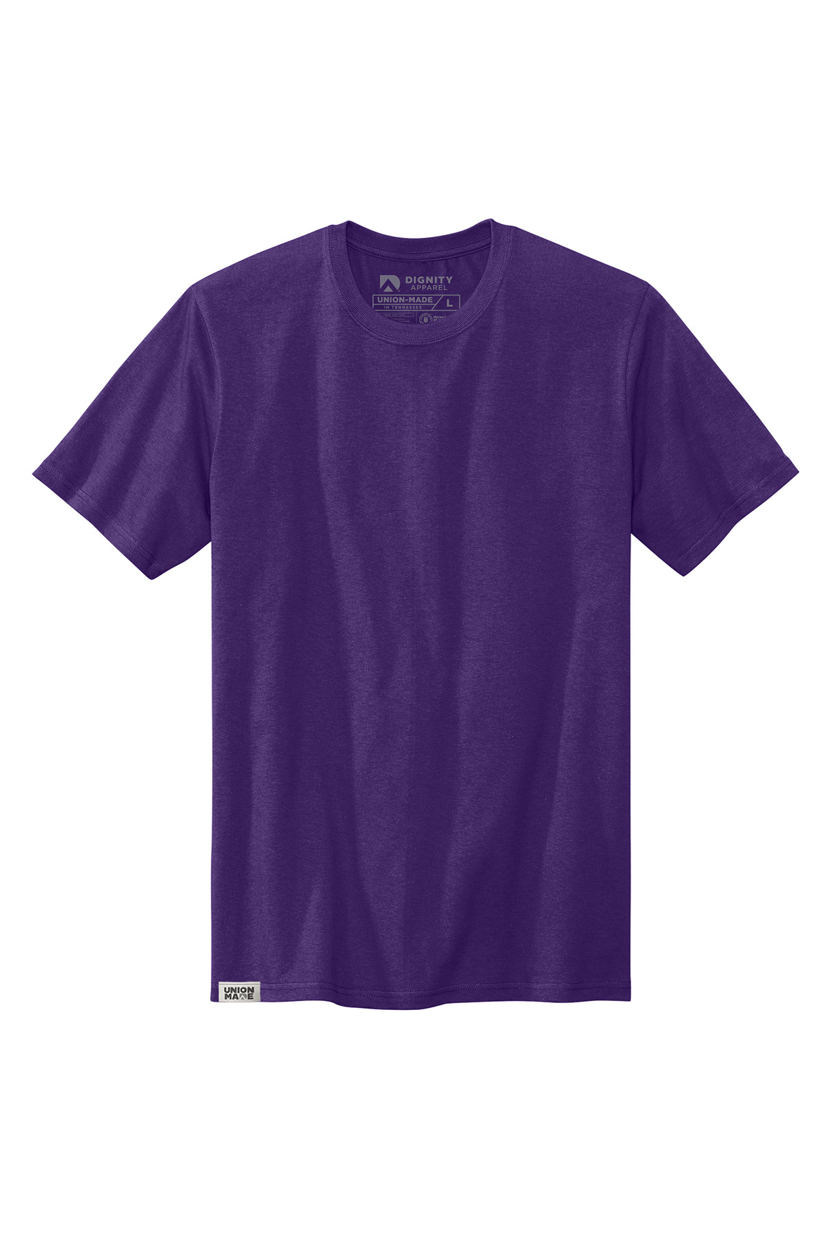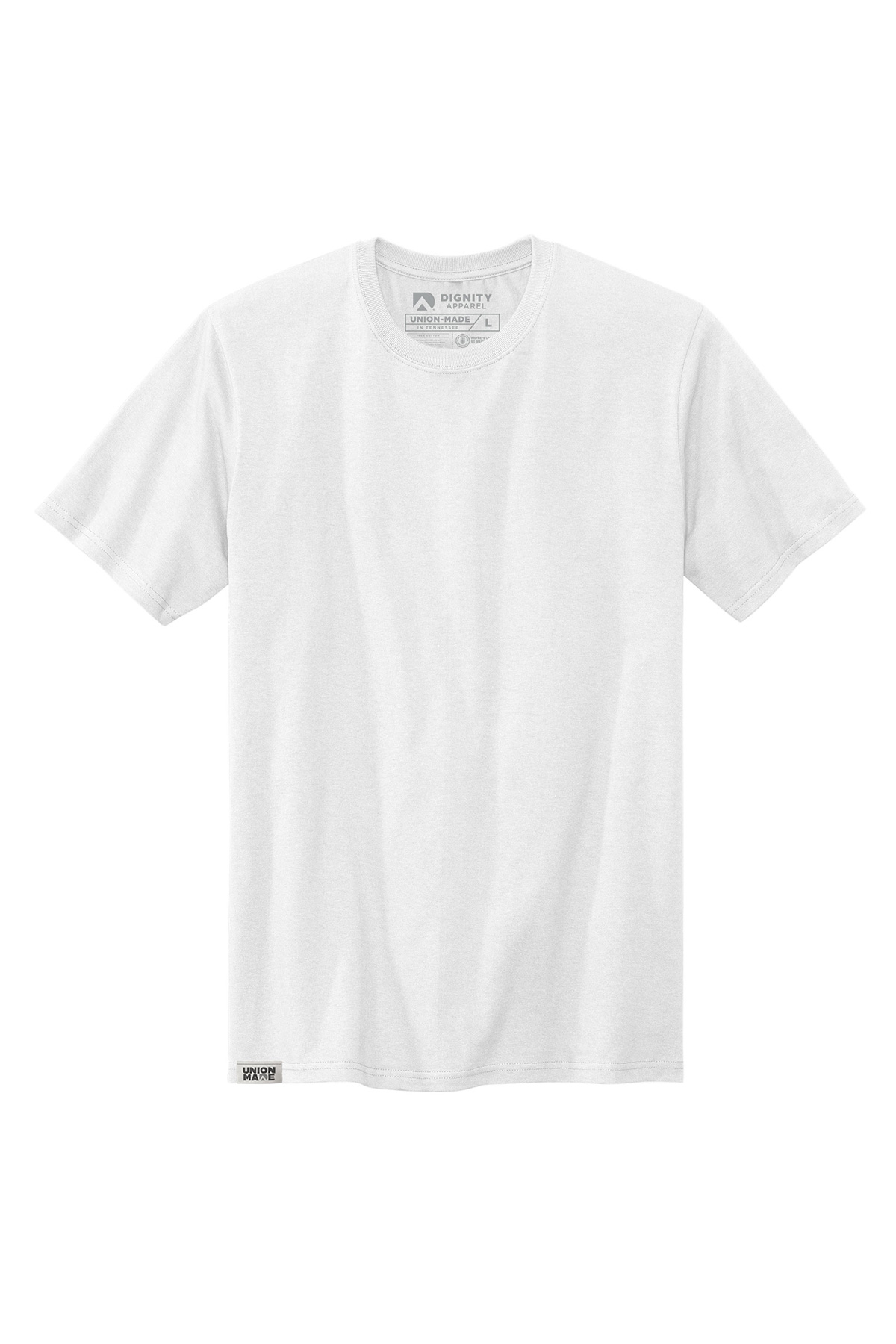 Free decoration includes a one-color, one-location print or embroidery (up to 5K stitches) and free UPS shipping within the continental United States. Screen print minimum: 48 pieces. Embroidery and direct-to-film minimum: 12 pieces. Valid on Dignity Apparel orders—cannot be combined with other brands.