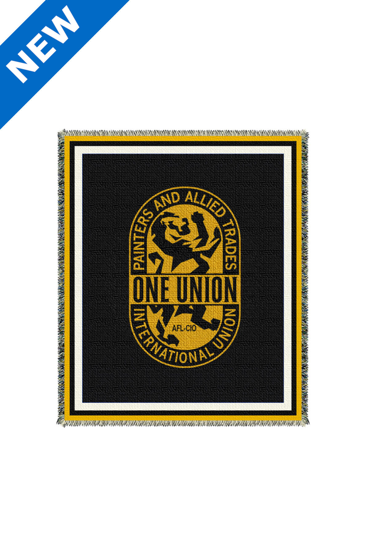 2-layer throw blanket made from 100% cotton and woven with colored yarns using a traditional jacquard process. Fringed on all four sides, this USA-made tapestry throw offers timeless texture and custom detail ideal for gifting or display. Multiple sizes available. Min. 25. Please call for pricing.